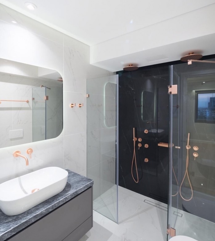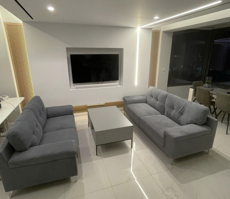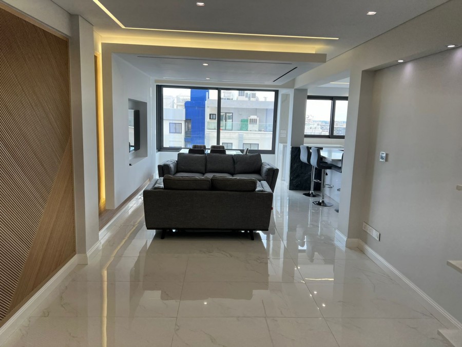 Crafted with exquisite attention to detail, this apartment features bespoke design and high-end finishes, including marble and real wood floors. The spacious open-plan layout seamlessly blends the kitchen and living area, boasting top-of-the-line Bosch appliances and duct-mounted air conditioning for comfort.