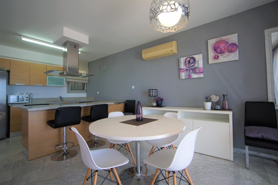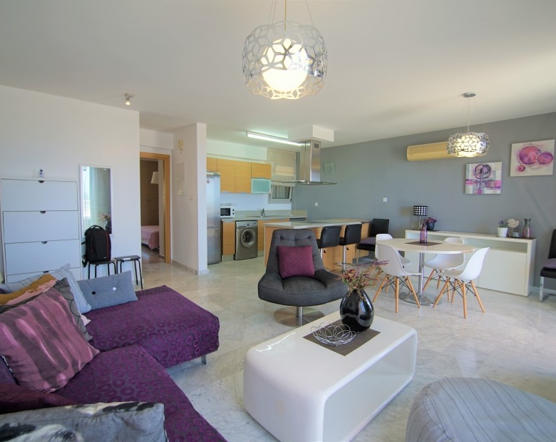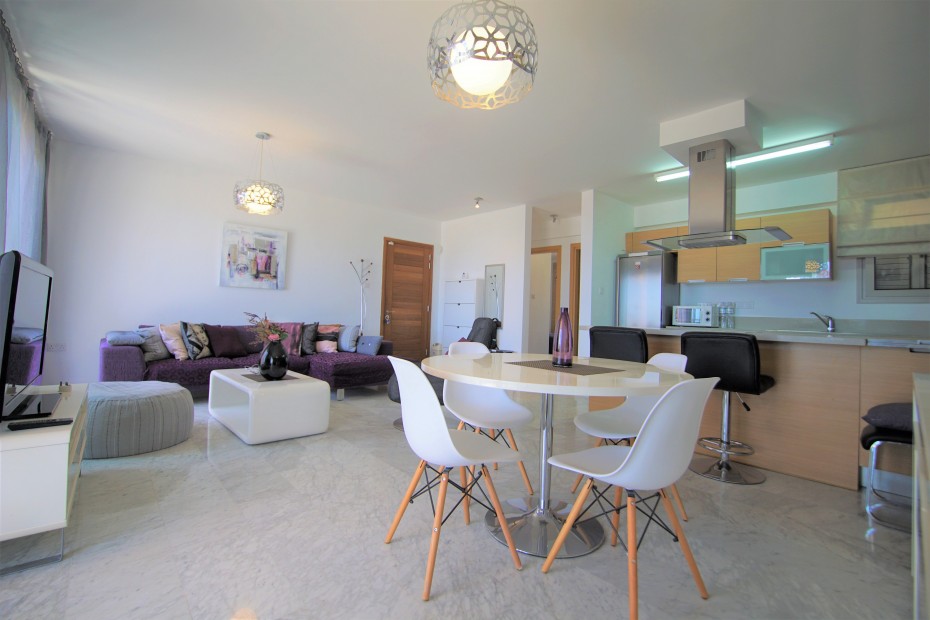 Exceptional 2 bedroom apartment on the top floor which originally has been provided as a penthouse offers magnificent views of Saint Raphael Marina, sparkle Mediterranean sea from heights of Amathusa. Bright and well positioned apartment has both mountains and sea view as well as sun lighted rooms which gives a warmth and cozy living. Apartment comprises of 82 sqm inner area and uncovered veranda of 25 sqm to enjoy the gather with amazing views of surroundings. Being just within a minute of walk tot he beach, restaurants and 5* hotels this property is a great investment for the home to be !!!