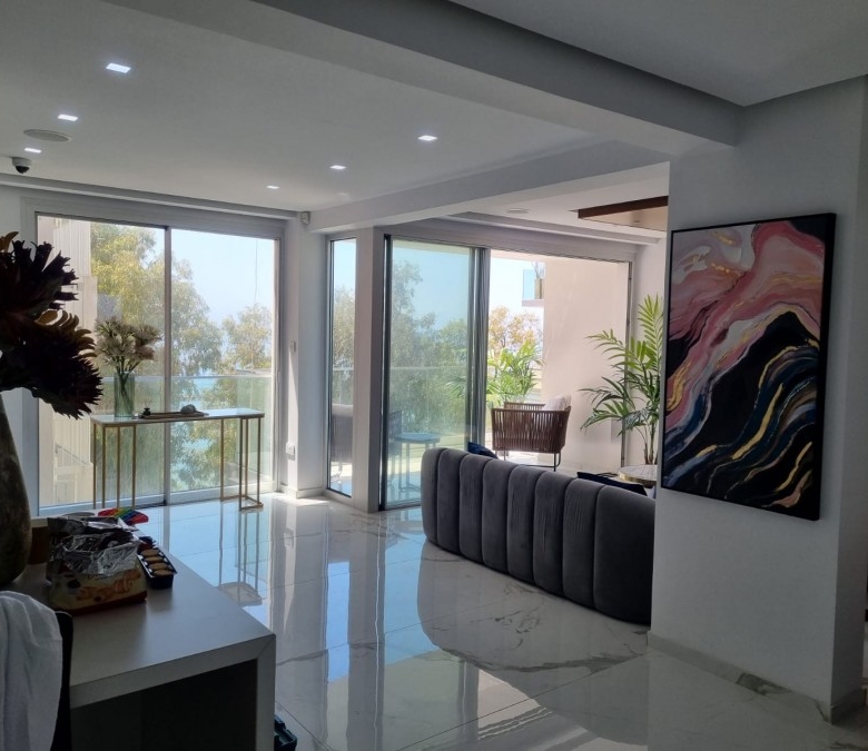 Luxurious and modern 3-bedroom apartment located in Agios Tychonas, Limassol It is located directly on the beach and is positioned between the Four Seasons and Poseidonia Hotel, with a Blue Flag beach right at its doorstep. The apartment features top-quality finishes throughout, including a bespoke design kitchen with Corian worktops and high-quality ceramics. The bedrooms have top-quality wooden parquet flooring. There’s a video entry system, a sea-view facing balcony, a family bathroom, and an en suite in the master bedroom. The apartment is fully automated, with centralized remote operation for various functions such as lights, blinds, curtains, audio, video, heating, and air conditioning. It also boasts a central audio system in all rooms and a mood lighting system throughout. The building is well-maintained and equipped with a new lift and entrance. It also offers remote control entry and secure access to the beach. The apartment has double glazing, contributing to energy efficiency and sound insulation.