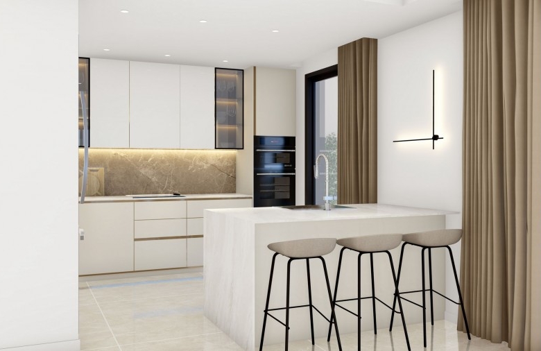 New project consists of two buildings made up of 1, 2 & 3 bedroom apartments, and 3 bedroom Deluxe Penthouses offering private rooftop pool and unobstructed sea views. Surrounded by tranquil landscaped gardens, generous terracing, relaxation & entertainment areas and outdoor pool. Designed to feel part of the vibrant town center but with the utmost privacy in mind.