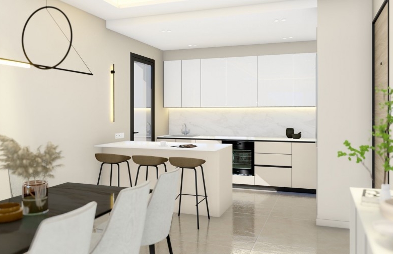 New project consists of two buildings made up of 1, 2 & 3 bedroom apartments, and 3 bedroom Deluxe Penthouses offering private rooftop pool and unobstructed sea views. Surrounded by tranquil landscaped gardens, generous terracing, relaxation & entertainment areas and outdoor pool. Designed to feel part of the vibrant town center but with the utmost privacy in mind.