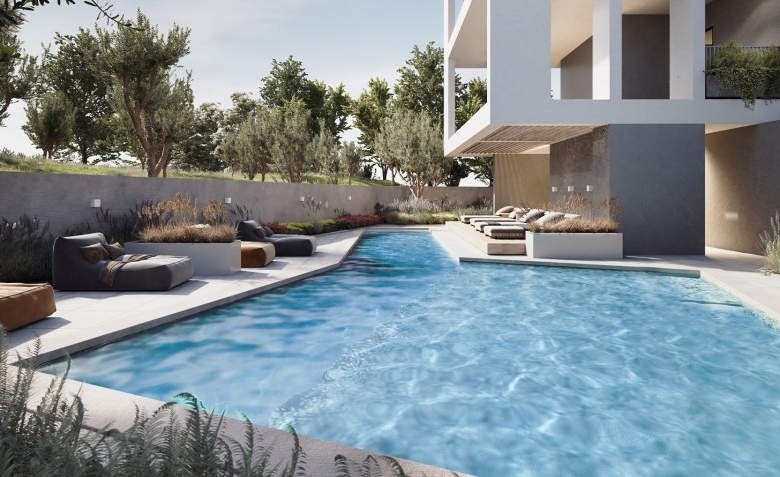 A residential building designed to blend modernity with timeless sophistication. Located in Limassol’s prime area, Agios Athanasios, it offers convenience and prestige with easy access to main roads and city amenities. Featuring 12 luxurious 2- and 3-bedroom apartments in a stylish setting that stands the test of time. Relax and enjoy outdoor living by the communal pool area, surrounded by lush greenery.