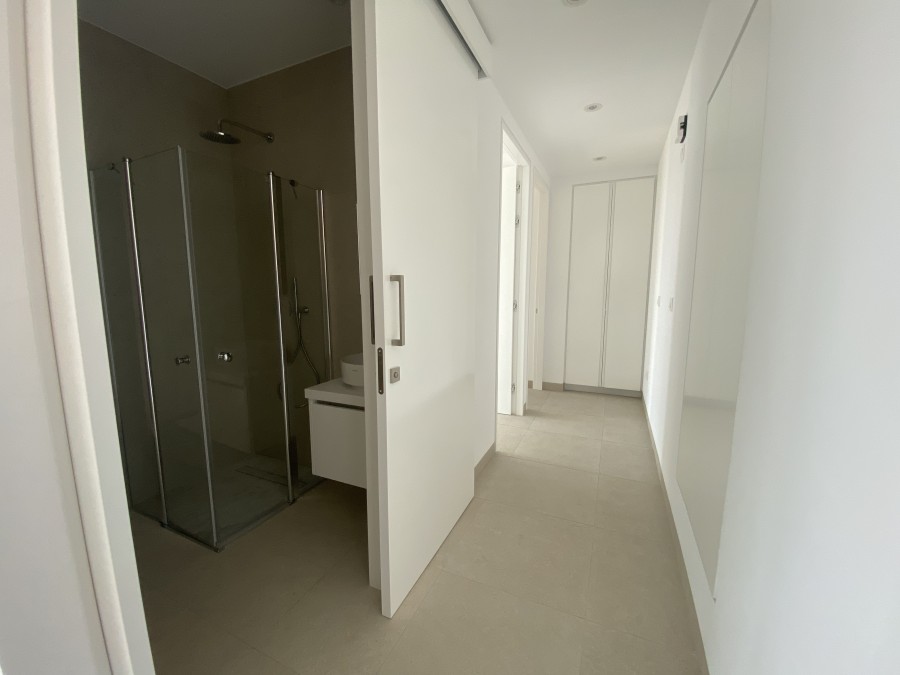 Entertain guests or simply unwind on the spacious 25-square-meter balcony, offering sweeping views of the city skyline and the tranquil Mediterranean Sea beyond.