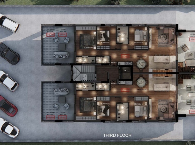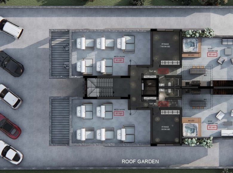 This unit features roof garden of 55sqm, covered (35sqm) and uncovered (21sqm) verandas.
