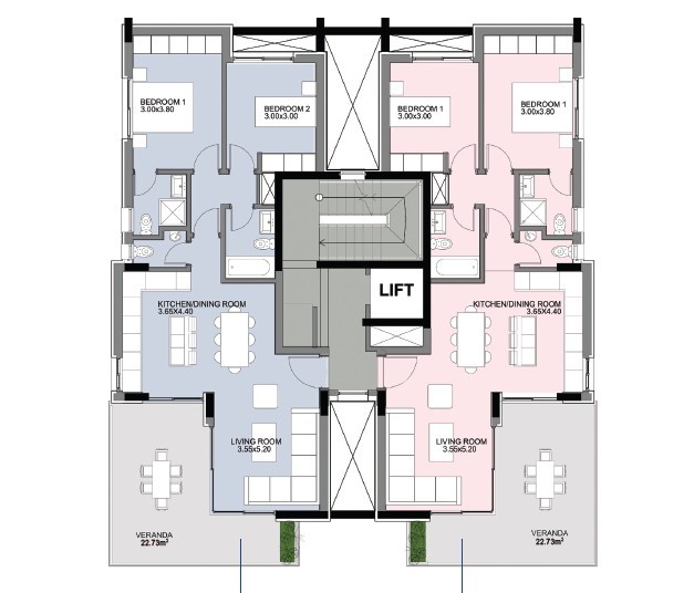 This elegant, contemporary residential complex comprises three floors of six well-designed two-bedroom apartments, and is located a mere 6km from Limassol’s buzzing city center, and a stone’s throw from the city’s stunning coastline. The modern residences are ideal for families, thanks to the quiet seclusion of the surrounding residential neighborhood, but also the wealth of nearby amenities, including schools, shops, and local eateries.