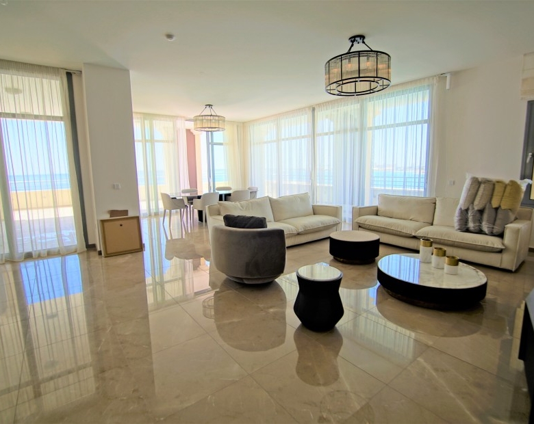 This 4 bedroom flat is part of the Limassol Marina, an exclusive waterfront development which combines elegant residences and a state-of-the-art marina with a range of fine restaurants and shops plus a new spa and fitness club creating a lifestyle uniquely shaped by ‘living on the sea’. It’s also just a 5 minute walk to Limassol old town where you can also find the Limassol castle and more traditional stone built shops and bars/taverns. The unique flat is surrounded by a landscaped green area with a huge communal swimming pool enjoying uninterrupted sea views and also has access to a private beach! The apartment comes furnished with electric under floor heating, a/c installed, oven, hob, extractor fan, refrigerator, washing machine and dish washer. Also a good size veranda to lay back and relax.
