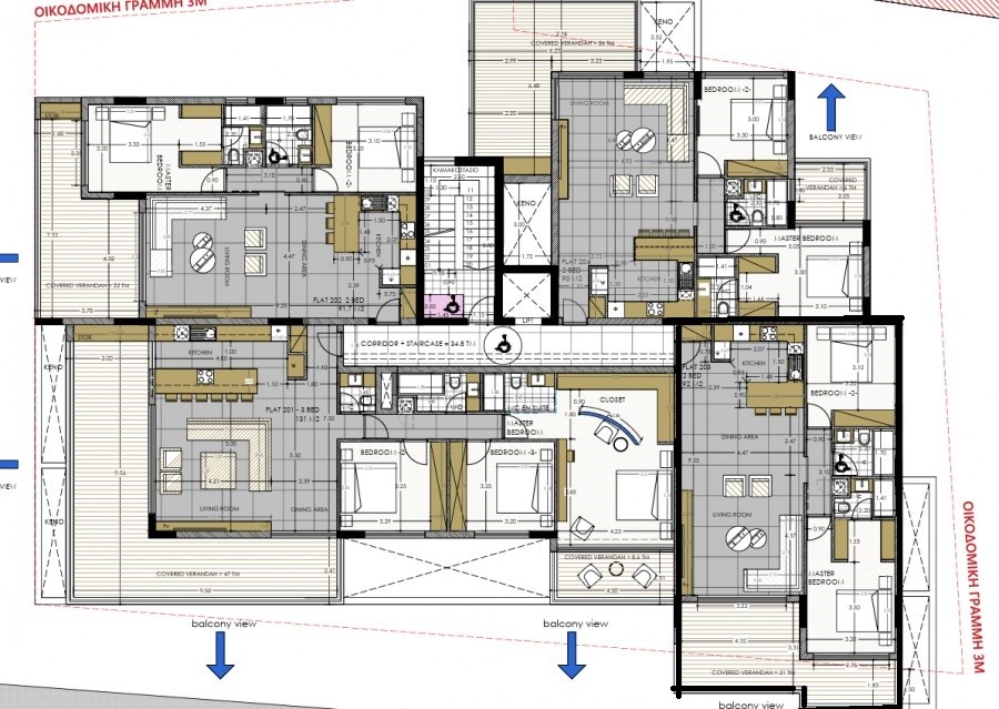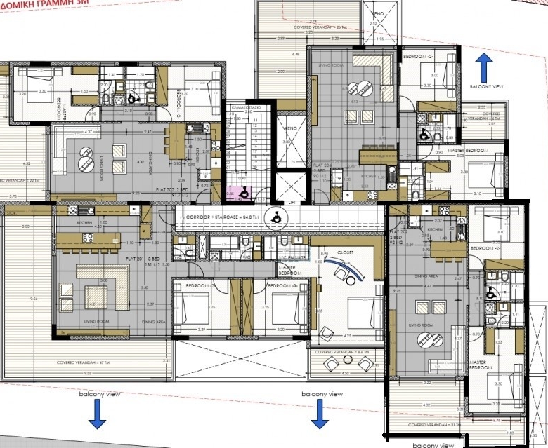 In this modern residence, there are only 10 two- and three-bedroom luxury apartments and penthouses. The top floor apartments (penthouses) have spacious private terraces with an extra room and sauna. Each apartment enjoys 3 meters height ceilings; top quality finishes, VRV Air Condition Systems, under floor water heating and Italian made Kitchens. Located in a prime location at Panthea Area next to private and local school. The apartments are in a quiet residential area enjoying uninterrupted sea view from spacious balconies and rooftops.