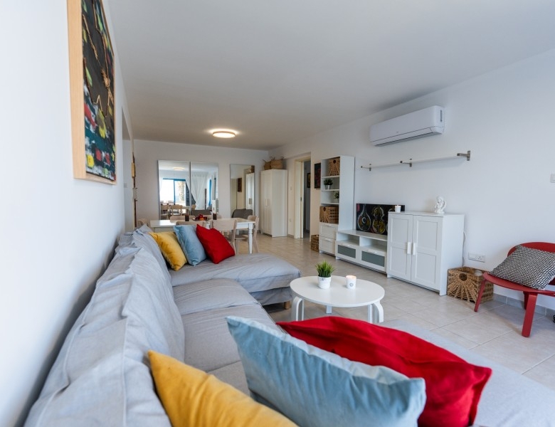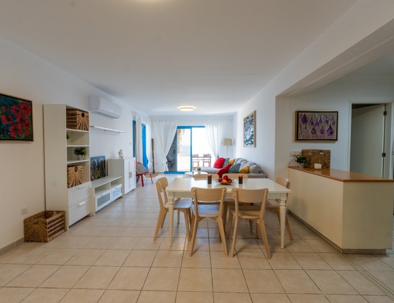 The apartment features a cozy covered balcony of 11 square meters, alongside a spacious 77 square meter veranda, perfect for barbecues and memorable evenings with family or friends, all set against the stunning backdrop of the sea. The peaceful surroundings promise a serene living environment, with the vibrant city of Limassol just a 15-minute drive away, turning every day into a holiday experience.