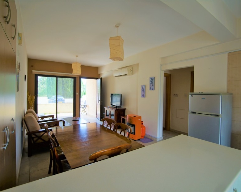 A 2 bedroom ground floor apartment in Pissouri just out of the main village roads and 3 minutes of drive to Pissouri beach offers a quiet and small community in the gated complex. A ground floor apartment has a front side and back side private area to make a beauiful gather space or a small yard. Inner area of property 80 sqm and 35 sqm total uncovered verandas. Apartment benefits of its close proximity to the village center and restaurants  and local bars as well as great positioned complex avoiding a noise from a main roads.