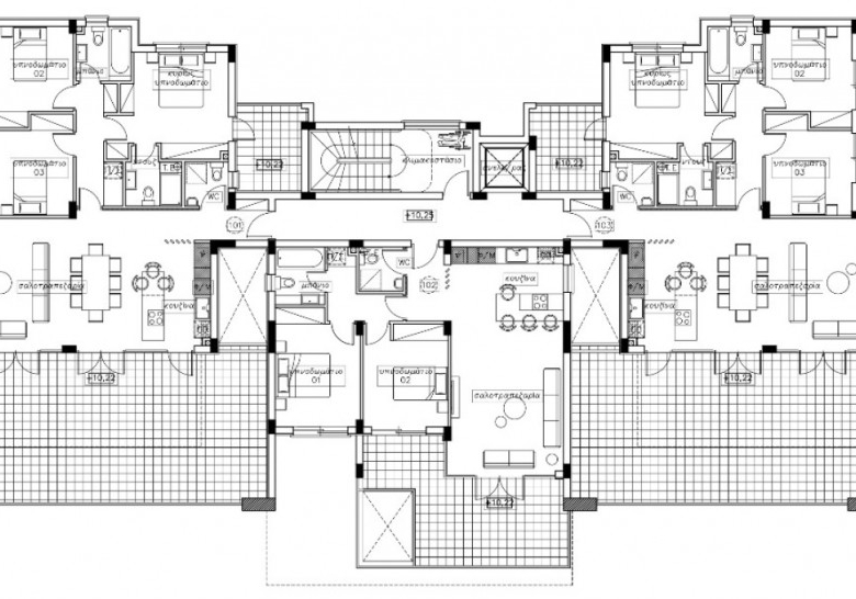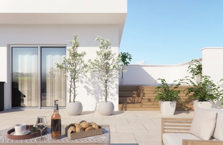 Each three bedroom apartment is of 115.00 m² and it includes living room, kitchen and dining area, three bedrooms of which one ensuite, one bathroom, a guest toilet and a spacious veranda.