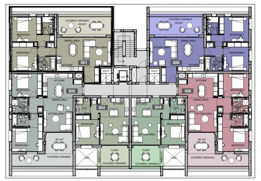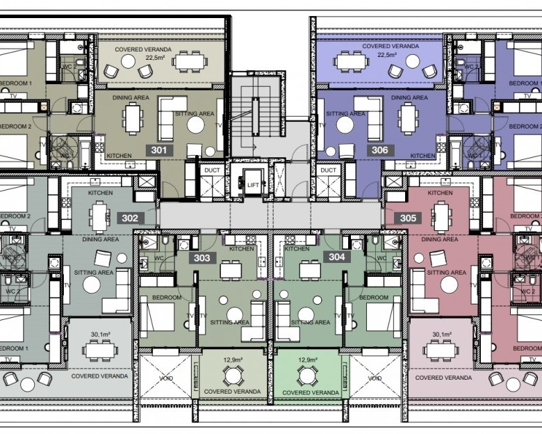 A residence offering nothing more than opulence and elegance created to indulge your perceptions. These well thought out curated apartments and penthouses are designed meticulously in every detail to bring home the best luxury lifestyle. Surrounded by endless lights of Limassol and a stunning skyline, this city offers an upscale vibe that will define a Mediterranean resort. A perfect place to create unforgettable memories, relax and escape. Enjoy Limassol’s most enticing lifestyle with the sparkling Mediterranean Sea located only moments away. The complex is a 5 story building boasting 24 apartments and 4 luxurious penthouses with private roof tops and swimming pools. The roof of the residence offers a tranquil environment providing outstanding amenities essential to the unique design. A fully equipped gym and sauna will energize your body, mind, and soul with a great kick start to your day or simply take away any stress accumulated during the day. Immerse and relax around an inviting communal swimming pool with pleasant peaceful surroundings and fulfill a true luxury urban lifestyle with positive energy.