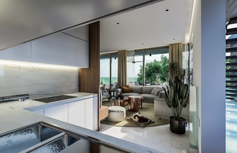 This residential development in Limassol showcases a contemporary architectural style with a strong emphasis on sustainability and natural integration. The boutique building features a modern facade accented by greenery on its terraces, creating a balanced connection between city life and nature. Currently under development, it offers spacious balconies, high-end finishes, and a sleek, modern aesthetic ideal for those seeking both luxury and tranquility. Key features include master bedrooms, guest WCs, custom Italian kitchens, open-plan living areas, built-in Italian fixtures, secure gated access with CCTV, heating and air conditioning, a communal swimming pool, dedicated storage and parking, and energy-efficient photovoltaic solar panels—all situated in a prime location.