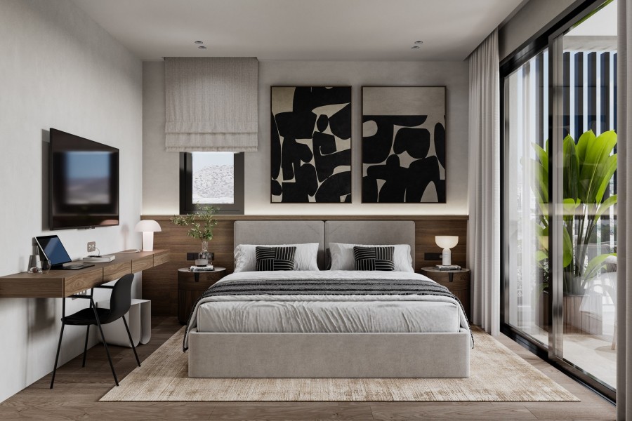 The apartments are designed for comfort and style. They contain spacious interior spaces, and the top-floor apartments have stunning sea and city views. All apartments enjoy spacious living areas, modern kitchens, ensuite bathrooms, and private balconies.