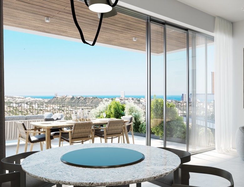 A premier hillside development located in Germasogeia, Limassol, offering breathtaking views of the city, sea, and surrounding green hills. This luxurious residential retreat combines the peace of hillside living with the convenience of city amenities, including bars, supermarkets, restaurants, gyms, and schools, all within easy reach. Residents enjoy a tranquil setting and a quick escape from the urban rush, while remaining close to Limassol’s lively center. The unique blend of natural beauty and urban vibrancy is reflected in the residence’s elegant design, featuring a striking contrast of white stone embellishments and deep grey wall cladding. Ensuring a lifestyle where luxury and convenience coexist in harmony.
