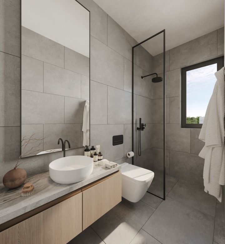 Crafted to the highest European standards, this apartment combines energy-efficient design with premium finishes throughout. It features high-quality glazed sliding doors and windows in a sleek dark grey finish, a fireproof security entrance door, and engineered hardwood flooring in the bedrooms for added warmth and style. Kitchens are designed for functionality with easy-clean surfaces, while bathrooms showcase durable ceramic tiles in a range of elegant finishes. Additional highlights include Energy Class A rating, spacious wardrobes, high-spec sanitary ware, and a thoughtfully designed lighting system for everyday comfort and reliability—offering a refined living experience with both aesthetic appeal and practical comfort.