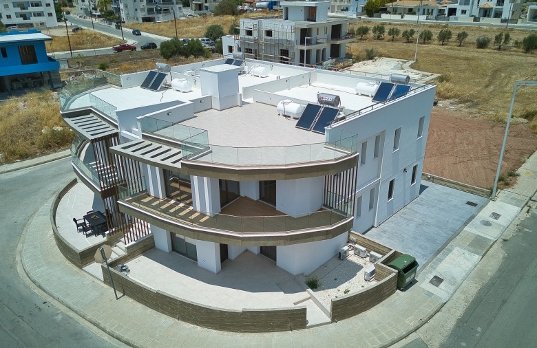 Amazing, unique project of four semi-detached apartments in a very quiet but convenient location in Paphos. Within walking distances to supermarkets, pharmacies’, schools and many more amenities. Great Sea views, privacy, spacious and bright bedrooms and living areas. Quality finishes and modern design make this project so enticing and ideal for a dream home or investment property. This unit has a roof garden of 40 square meters.