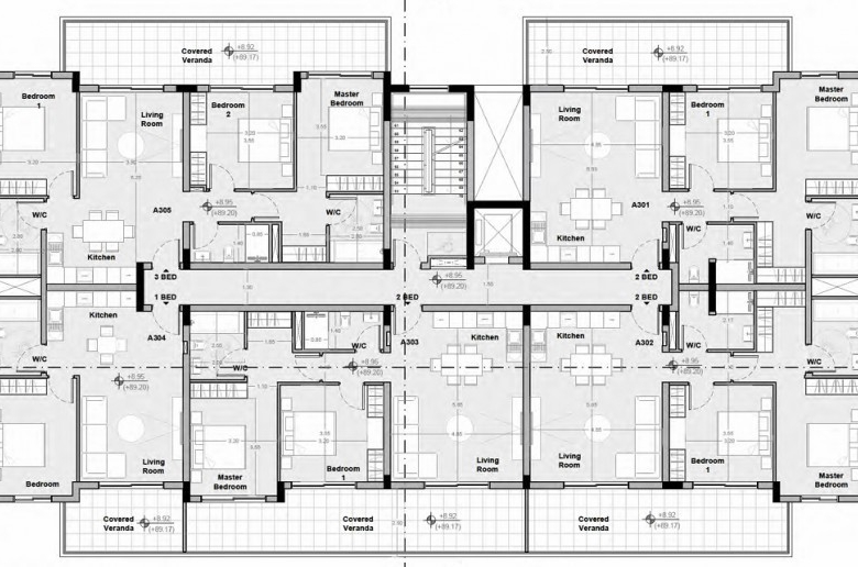 Each residence, designed with a focus on functionality and style, features spacious layouts, private balconies, and views of the Mediterranean Sea or lush landscaped gardens.