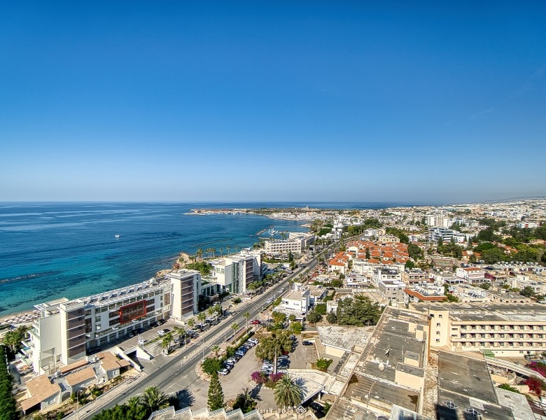 Unique residential resort and a celebrated Paphos landmark located at the city’s most privileged waterfront location. Consisting of two towers – the residential West Tower with 15 floors and the under-construction 5-star hotel chain on the East Tower with 16 floors – this resort is set to be the highest building in the city. Interior elements encompass high-quality materials and elegant finishes to combine maximum design with exceptional technical performance. Each of the 50 fully furnished and turnkey-equipped apartments will have its terrace, where residents will be able to enjoy the unobstructed sea views, the golden Mediterranean sunsets, and spend quality time with family and friends. The residences accommodate a gym, a spa, a swimming pool, sports facilities, a park, a playground, and stunning gardens – all essential commodities that invite relaxation and a comfortable lifestyle. Additionally, the resort will be surrounded by luxury hotels, nightlife, schools, universities, and hidden gems to be discovered. The breathtaking views of Paphos seafront, the harbor with its picturesque castle, and the panoramic views of the vibrant city add the perfect lasting touches to an already stunning project.