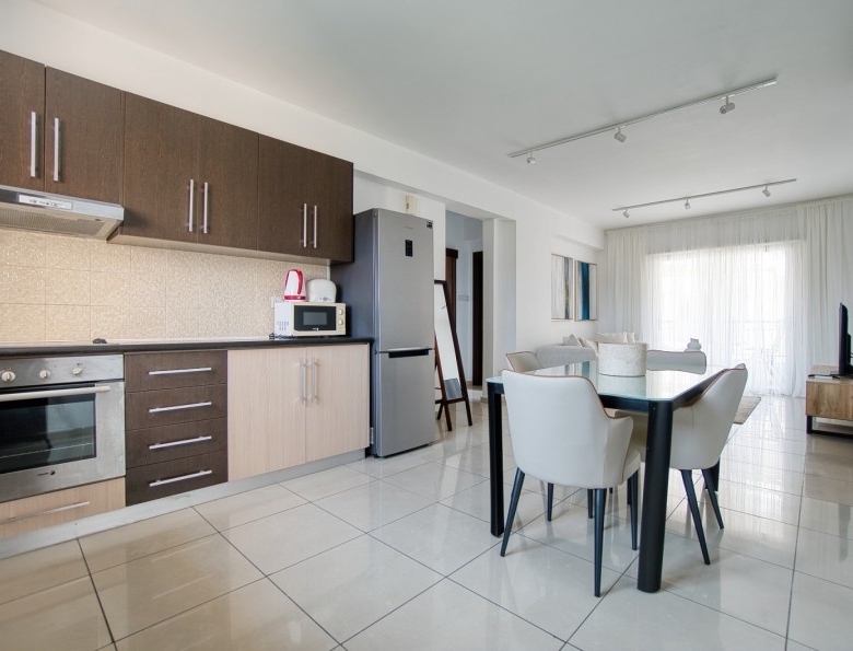 This is a fabulous 2 bedroom 2 bathroom, second floor apartment located in a small complex in Tomb of the Kings, Kato Paphos, close to all amenities, with great sea view and views over the pool. This great property offers quality living spaces and incredible outside opportunities due to the good sized veranda. Entering into the kitchen area with the main lounge leading to the veranda and the large open plan fully fitted kitchen. The large 2 double bedrooms are opposite the entrance ensuring peace and quiet whilst sleeping. The bathroom, which is adjusted to the bedroom. The bedrooms and the main room have air conditioning units which are also reversible for the cooler months. Also the property is fully furnished with new and good quality furniture.