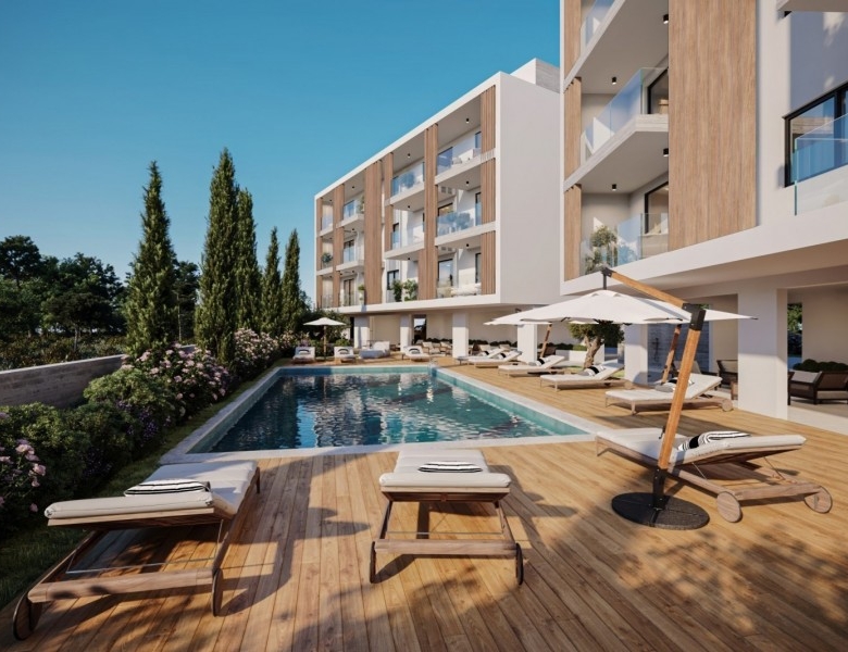 Project comprises of 2 blocks of studio, 1-bedroom and 2-bedroom apartments and a plethora of on-site facilities. It is located in the sought-after area of Universal in Pafos, the most popular area for short-term rentals in Cyprus. Consisting of 27 units in total, a reception area, a fitness centre, covered communal areas, kids playground, landscaped gardens and a 80 square-meters swimming pool, is an ideal project for both investment and permanent living.