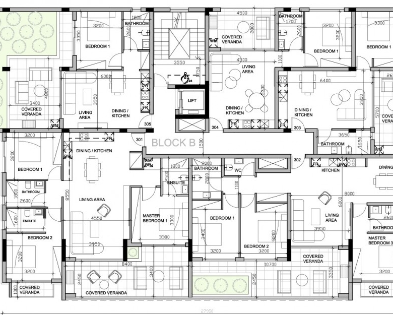 Block B offers a selection of 1, 2, and 3-bedroom apartments — 16 residences in total — providing flexibility to meet the needs of individuals, couples, and families.