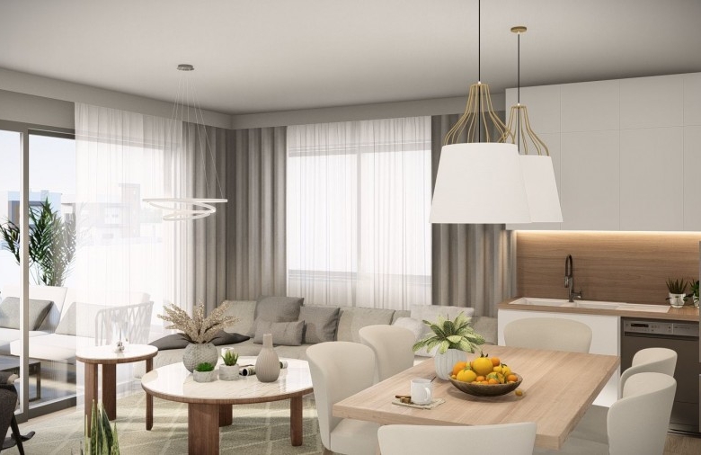 The apartment is located in Kato Paphos, which is a popular area in the city of Paphos, Cyprus.  The property is off-plan, indicating that it’s not yet constructed or completed. The apartment has 2 bedrooms, offering two separate sleeping spaces. The covered area of the apartment is 97 square meters, providing a sense of its interior living space.  It’s a 30-minute drive to the nearest airport, making it convenient for travel. The apartment is a 5-minute drive away from the beach, ideal for those who enjoy coastal living. The building has an elevator, making it easier for residents to access different floors. Golf enthusiasts will find a golf course within a 15-minute drive, offering recreational opportunities. Private Parking (covered): The property includes covered parking, ensuring protection for your vehicle. The apartment is a 5-minute drive from the town center and also within walking distance, providing easy access to shops, restaurants, and other amenities.