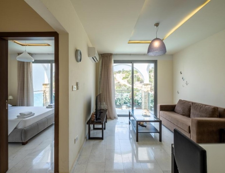 The property is a 1-bedroom apartment in Latchi. It is part of a resort comprising 59 apartments in total (studios, 1 bedroom and 2 bedroom apartments). The resort is located on the edge of the Akamas peninsula natural reserve. It is only a 3 minute drive to Latchi beach and just a short drive from Polis Chrysochous, Latchi harbour and historical attractions. The apartment has a covered area of 47sqm and veranda of 11sqm. It consists of an open plan area with kitchenette, sitting area, one bedroom and a bathroom with toilet. The resort currently features an outdoor swimming pool with bar, an indoor saltwater pool and a sauna with indoor pool. The property is a unique opportunity to acquire your investment or holiday apartment by the sea. The apartment does not have a separate title deed. Sale to be effected through a Sales and Purchase agreement which will be deposited at the LRO.