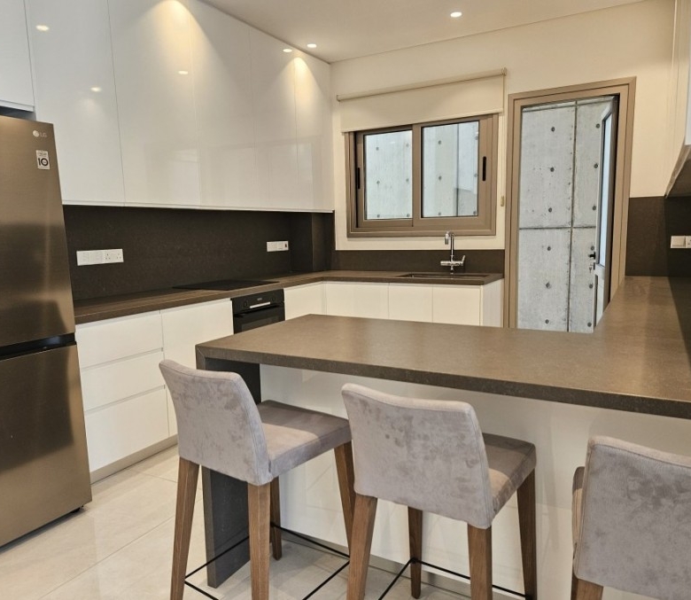 Discover contemporary luxury in this spacious 3-bedroom ground floor apartment located in the most prestigious area of Paphos. Offering 130.59 m² of internal space, this fully furnished residence features underfloor heating, a VRV air conditioning system, and a modern kitchen equipped with premium appliances. Just steps from City Hall, popular restaurants and bars, and within close proximity to Paphos Harbour, universities, and Kings Avenue Mall, this apartment combines high-end comfort with prime city-centre convenience.