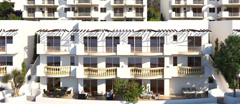 The property is a luxury 2 bedroom apartment for sale in Paphos, Cyprus. The residents will enjoy superb facilities such as a children’s paddling pool, a communal swimming pool, a private gym and landscaped gardens. The apartment is adjacent to a luscious green park with children’s playground facilities and is also close to all major city amenities, such as the Paphos Tourist area and Harbour and to the Kings Avenue Mall.