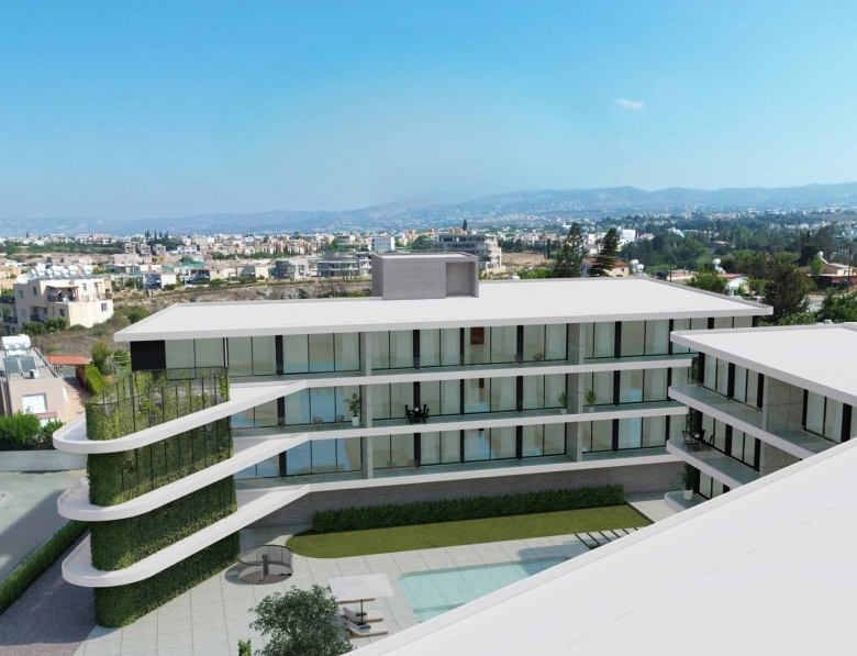 Located in the heart of Paphos, the new project is a stunning and luxurious yet affordable development, showcasing exceptional architecture and meticulous attention to detail. The development comprises two blocks with a total of 45 apartments for sale, offering one, two, or three – bedroom options. Each apartment offers an open-plan living, featuring high quality design and large windows that flood the space with natural light. Built to the highest standards using premium materials and finishes, these apartments include private parking, an in-houses gym and access to a communal pool surrounded by beautifully landscaped gardens. The apartment complex location is ideal for both residents and investors to buy, since it is located between the City Centre and the Tourist Area making it ideal for permanent residents or just generating extra income through tourists, students.