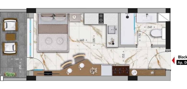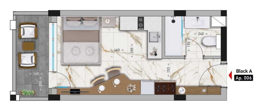 The studios are in the completion phase and are located on different floors in the Sole Mare Aheloy complex, which is also in the completion phase.