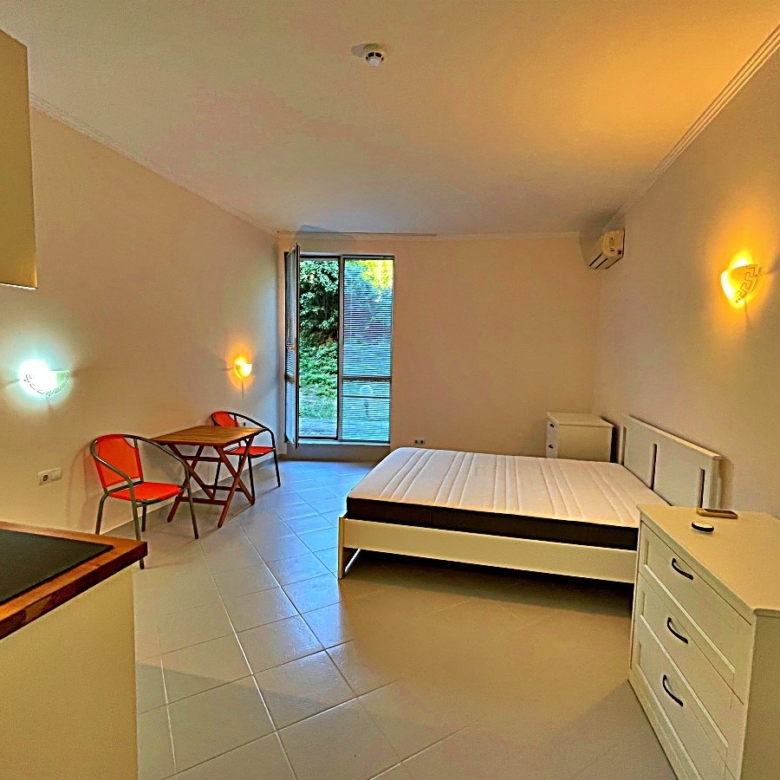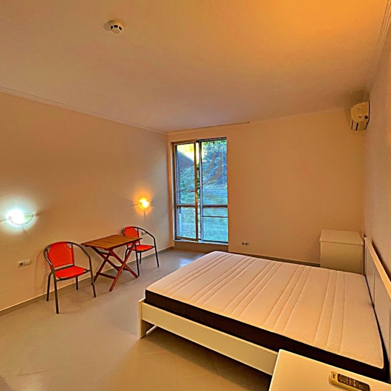 This cozy studio apartment is located on the ground floor of the popular Negresko complex in Elenite and offers direct access to the landscaped inner courtyard – ideal for outdoor relaxation.
