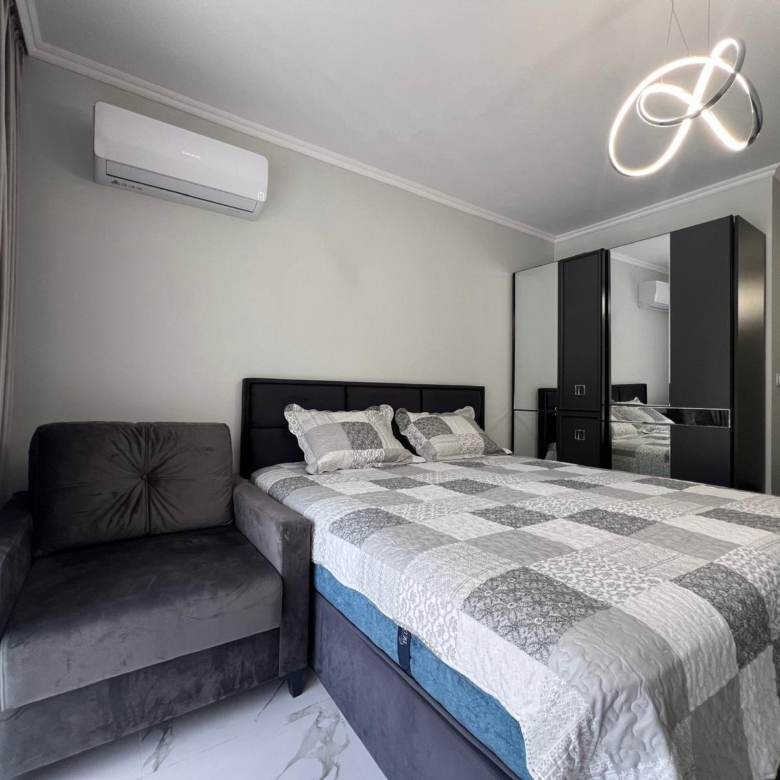 We present to you a cozy studio apartment with partial sea views from the balcony. The total area of the apartment is 44 sqm. It includes an entryway, a spacious room with a kitchenette and double bed, a bathroom with shower, and a balcony. Located on the 2nd floor, it is designed for long-term and comfortable living, featuring modern renovations and high-quality furnishings.