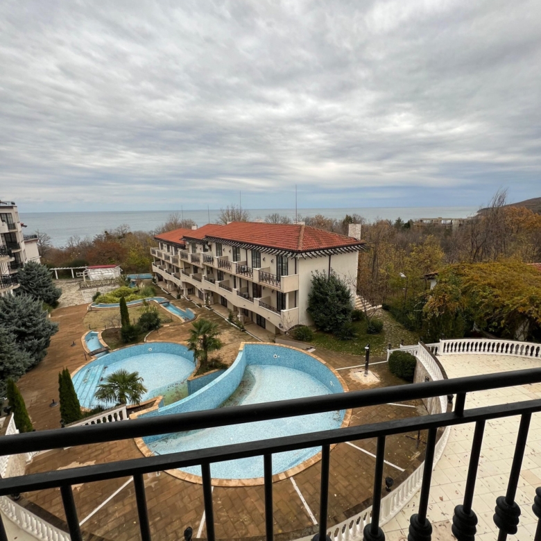 We offer for sale a beautiful studio with a view of the sea and the pool in the “The Cliff Beach & Spa Resort” complex, located on the seafront in the coastal town of Obzor, just a few meters from the beach and the sea.