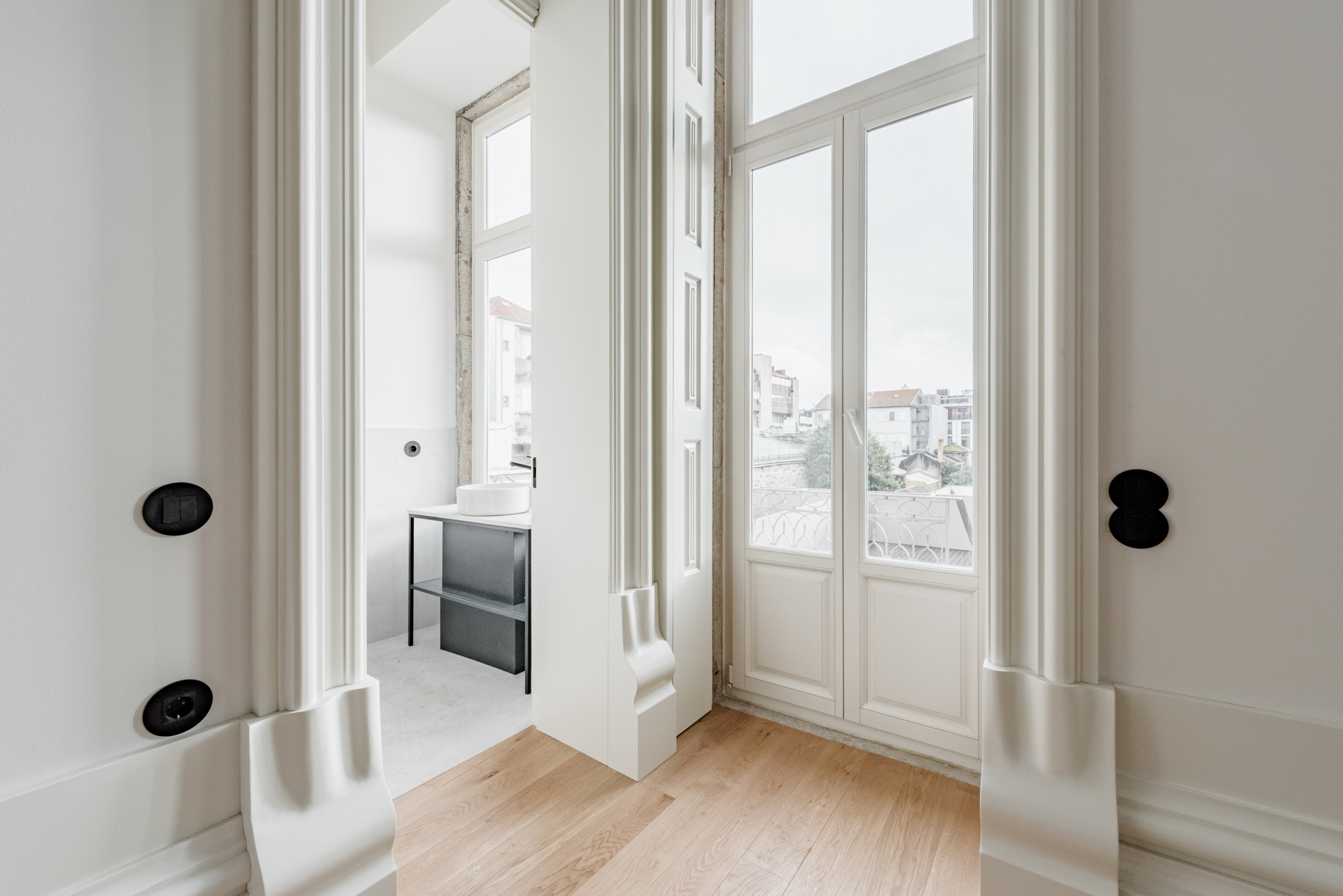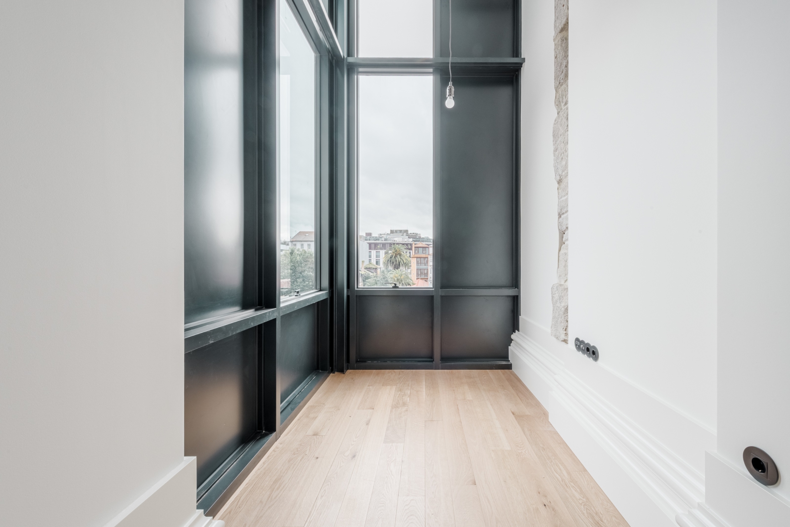 The apartment consists of a living room, fully equipped kitchen, and a bathroom. All rooms benefit from plenty of natural light and premium finishes. It also features solid wood flooring and white Estremoz marble pieces in the bathroom. Air conditioning in all rooms.This historic building is located between Sá da Bandeira and Bonjardim streets, surrounded by an excellent variety of services and commerce, very close to Aliados Avenue, perfectly framed in the historic center of the city. This building is within walking distance of Bolhão Market, Via Catarina Shopping Center, the emblematic Majestic Café, and a few minutes’ walk from the building is the Trindade Private Hospital. The largest public hospital in the city (Hospital de S. João) is 15 minutes away by metro.An excellent opportunity for those who wish to live or invest in a historic building in the center of Porto, ready for deed and occupancy.