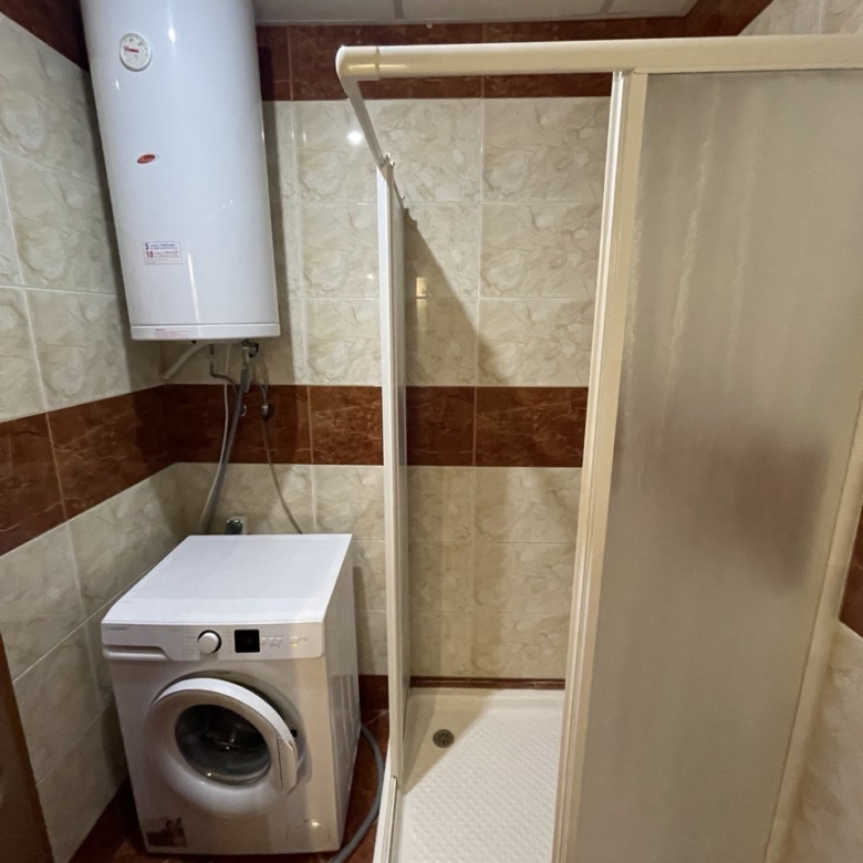This cozy studio apartment offers a balcony with a view of greenery and a pleasant outlook on the surroundings. The bedroom is equipped with a double bed and also features a dining area for comfortable meals. The apartment is air-conditioned to ensure a pleasant indoor climate in all seasons. A wardrobe provides ample storage space, and the small kitchen is equipped with a refrigerator and a microwave. Additionally, there is a washing machine in the bathroom, which adds extra comfort and independence.