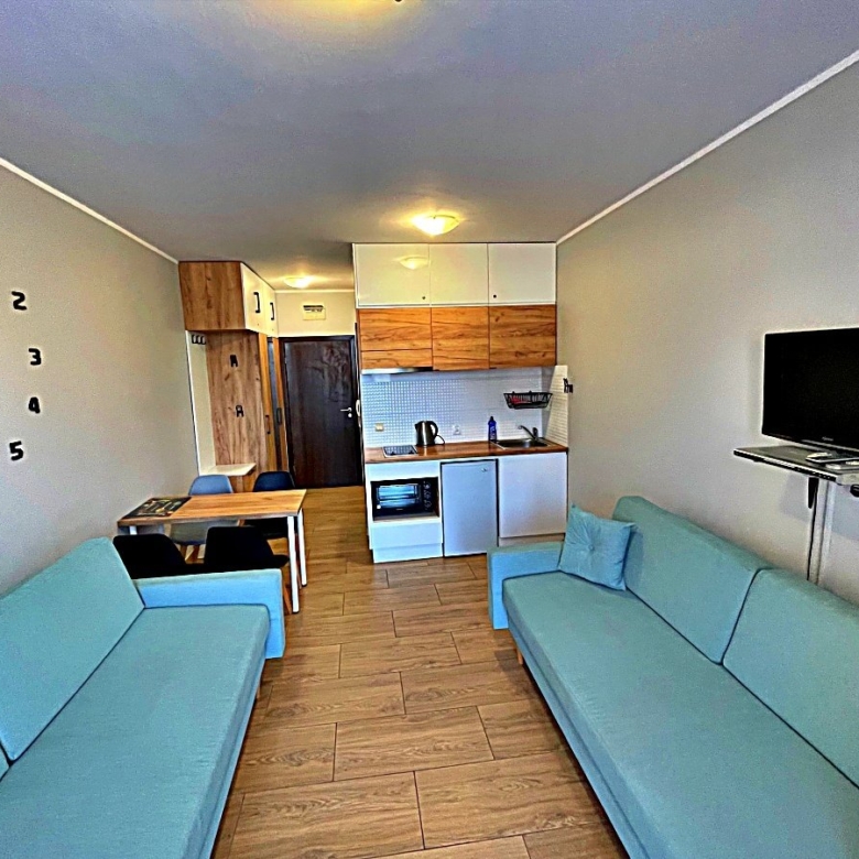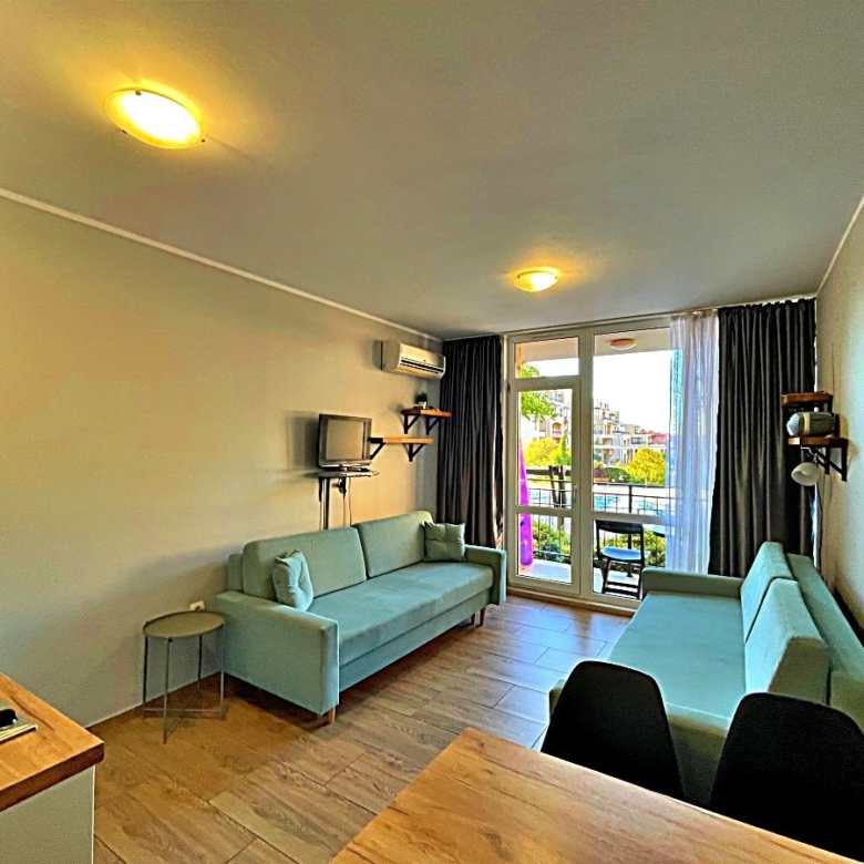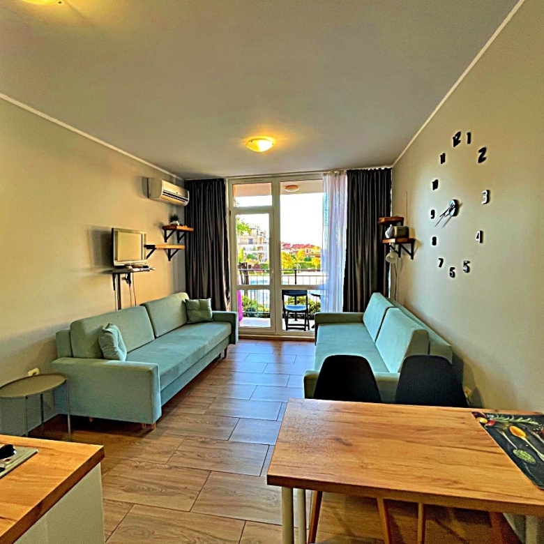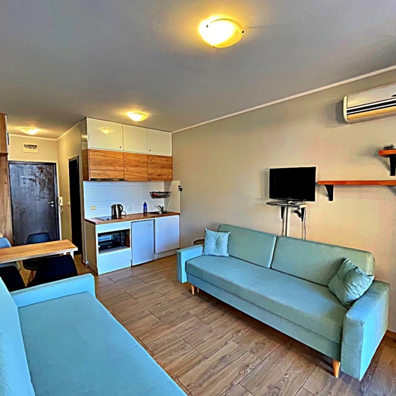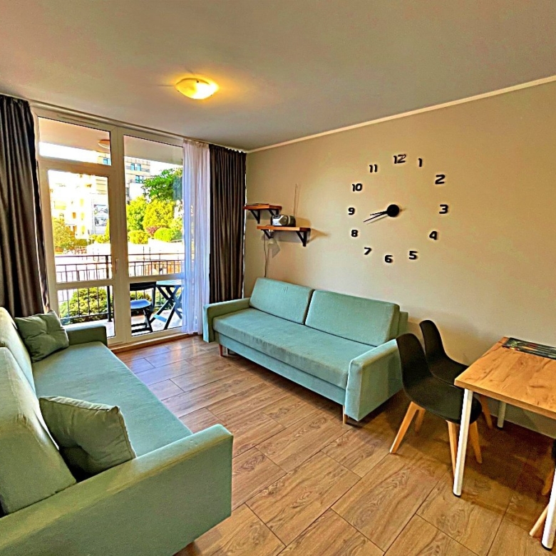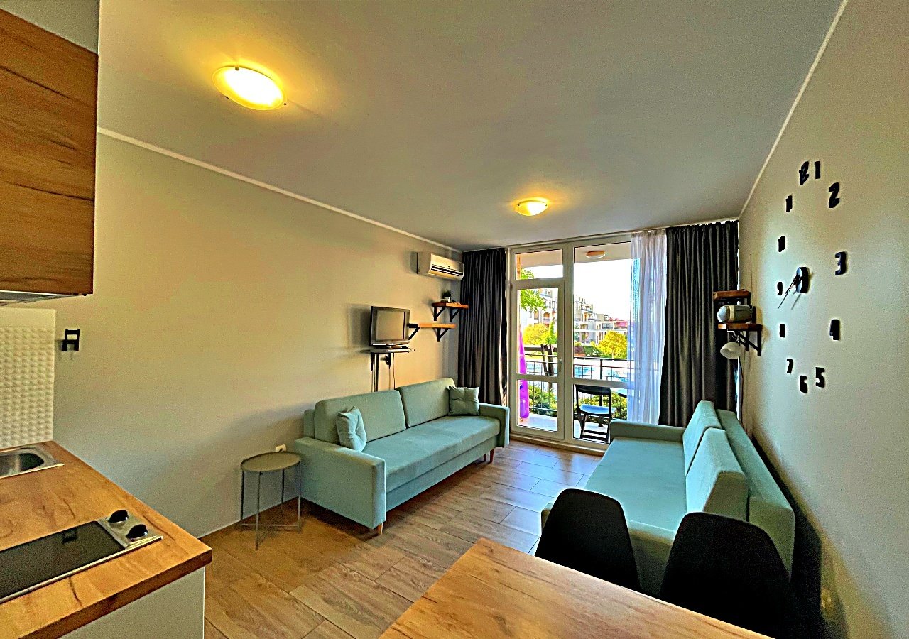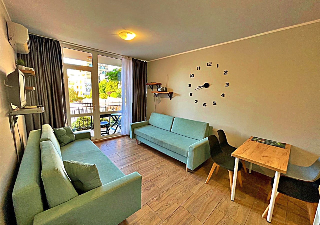 Welcome to your new holiday home on the sunny Black Sea coast! This stylish studio apartment is located in the well-maintained Luxor complex in Sveti Vlas – just a few minutes from the beach.