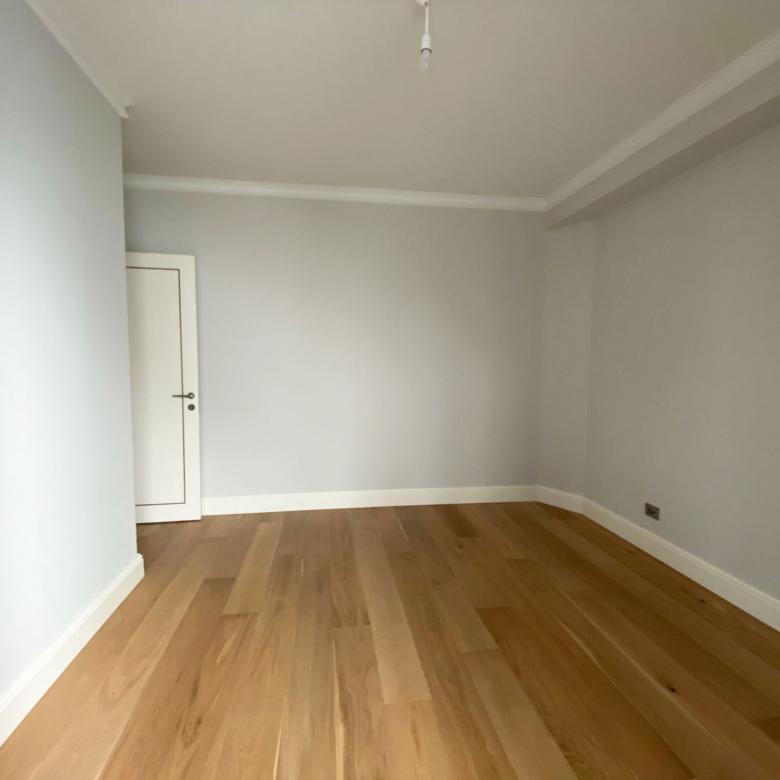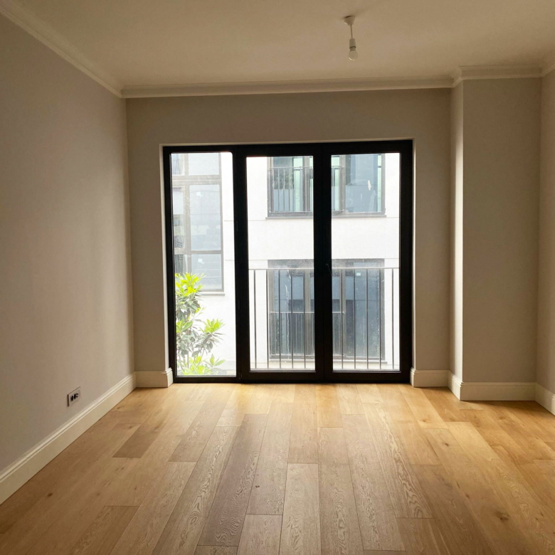 • Flooring & Walls: Light-toned wooden parquet floors bring warmth and work well with any color scheme. The neutral wall paint creates a calm backdrop, ready for personalization with artwork, shelves, or wallpaper.