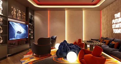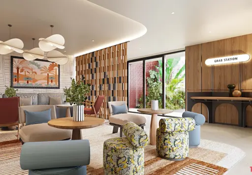 19 indoor facilities like lobby and grab-and-go stations, health care, laundry, co-kitchen, lounges, co-working spaces, golf simulator, live studio, meeting rooms, library lounge, home theater, kids club, game room, onsen, boxing area, fitness center, and pet grooming shop.