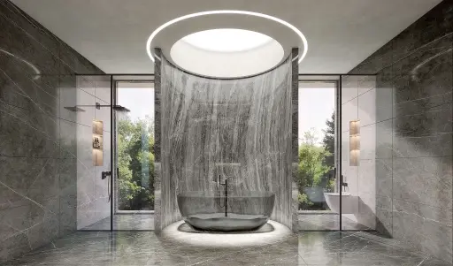 Designed with timeless modern aesthetics and natural materials, featuring high ceilings, panoramic windows, and expansive pool decks.