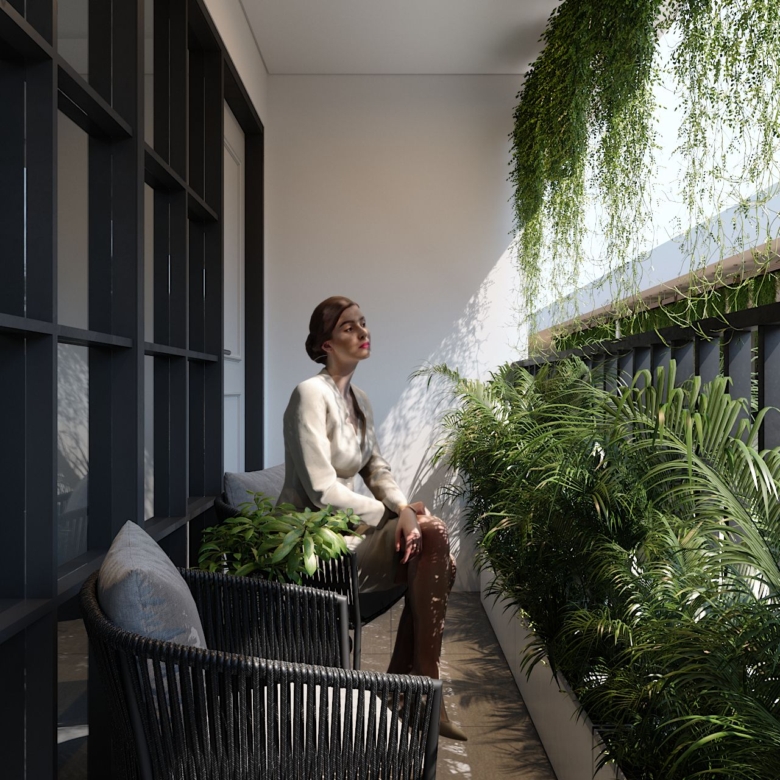 Private balcony or terrace surrounded by lush tropical greenery
