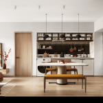 Modern kitchen with premium fixtures and open-plan dining