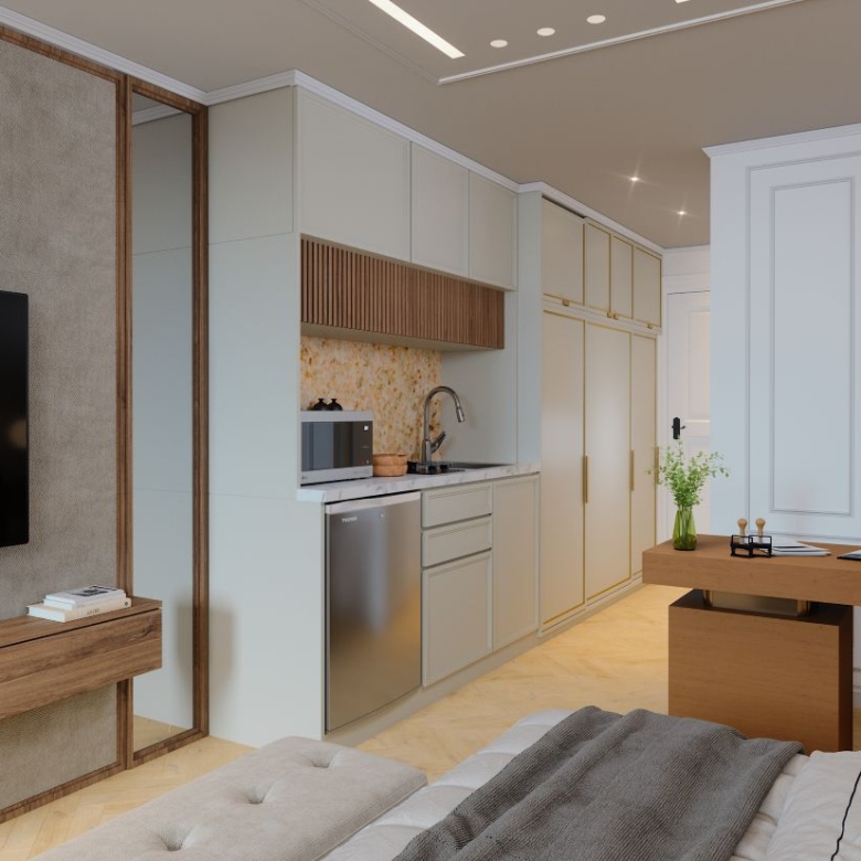 1-Bedroom Studio with sleek, contemporary interiors