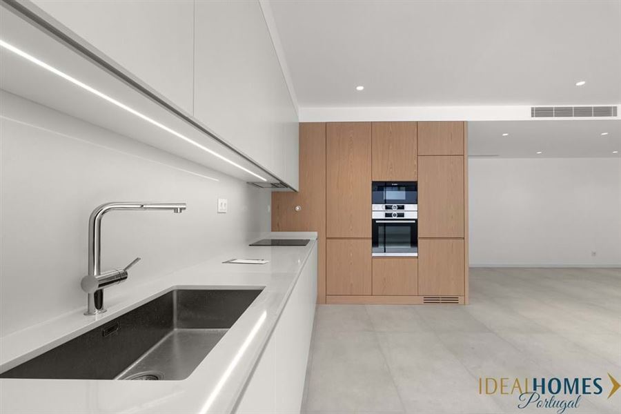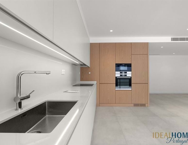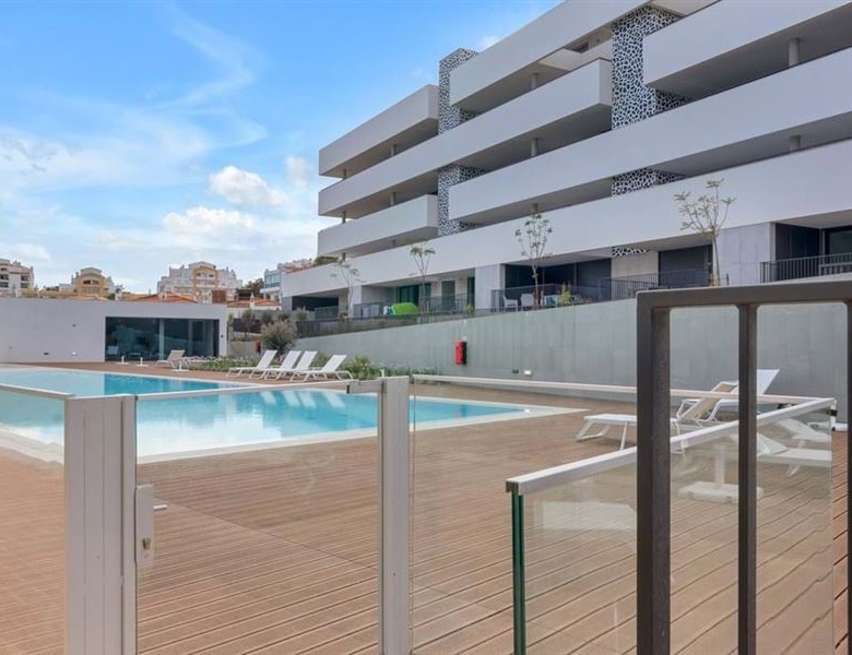 This luxury two bedroom apartment is located on a brand-new development in a scenic area of Lagos, in the western Algarve. A short two minute drive from the beach, and close to the historic city centre, this is a highly-sought after position. This apartment comprises an open plan living/dining are, a very large terrace, 2 bedrooms with fitted wardrobes, along with underfloor heating throughout. As to be expected from such a prestigious developer, the apartment has luxury finishes throughout from the fully equipped kitchen, which offers high quality appliances such as ceramic hob, oven, microwave, refrigerator, dishwasher, washing machine and extractor fan already installed. Residents also benefits from exclusive access to a large communal swimming pool complete with sun beds and lounge spaces, all surrounded by landscaped garden areas, sauna and gym, plus an underground private parking space.