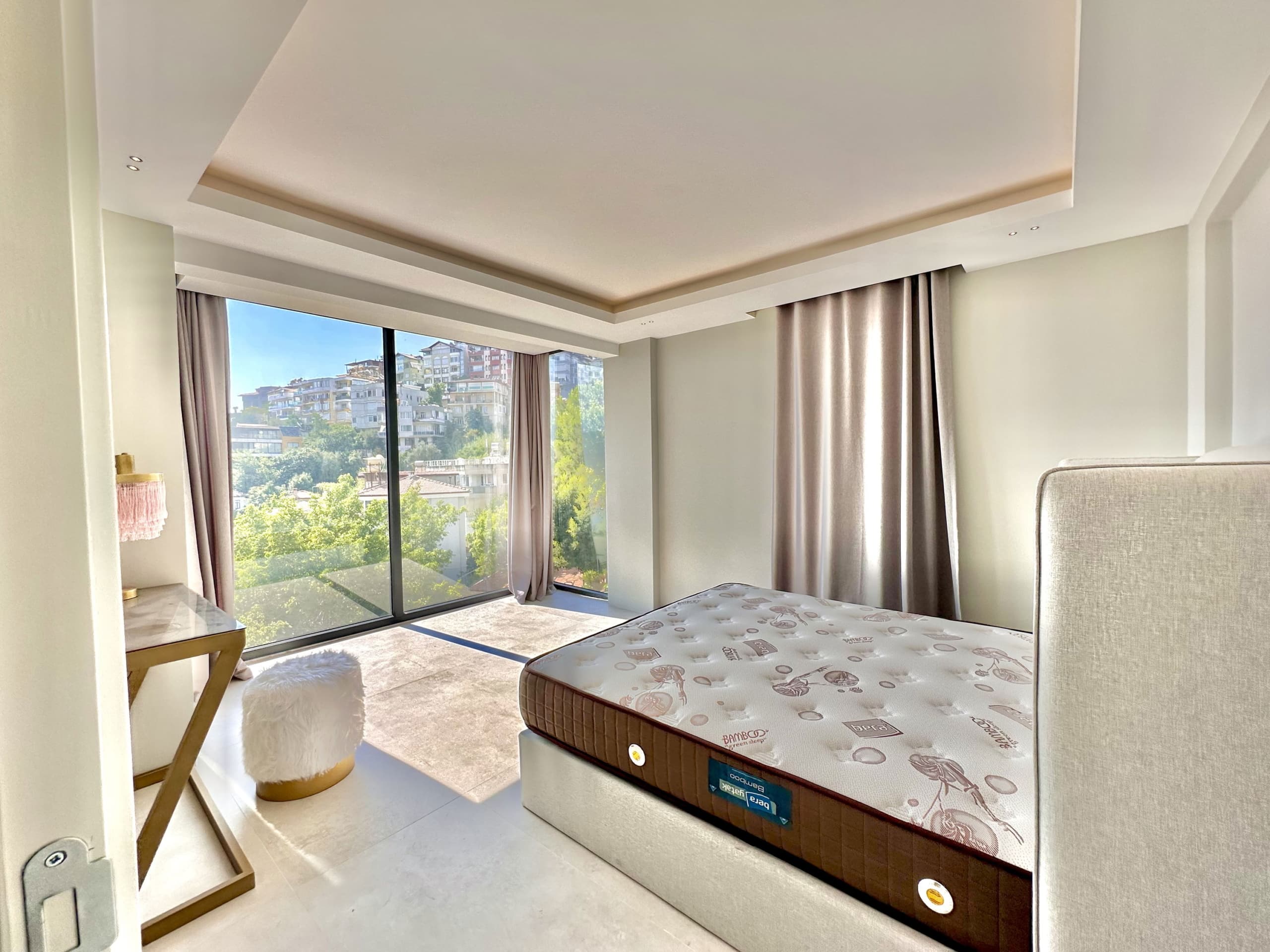 Thisfully renovated apartment for sale in Alanya Center blends modern luxury with unforgettable scenery. Located just 500 meters from the beachin the heart of the city, this stunning 2-room property offers uninterrupted views of the Alanya Castle, shimmering Mediterranean Sea, and city skyline—thanks to its impressive floor-to-ceiling windows in both the living room and bedroom.