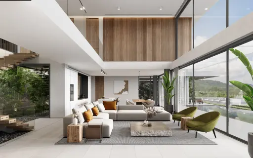 • Unrivaled Views and Green Space:Each villa offers panoramic sunset views, lush green hills, lakes, and direct connection to nature; unique art installations by renowned Thai artists enhance every residence.