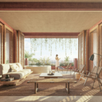 Each spacious bedroom features en-suite bathrooms, with four offering private terraces, while select rooms boast separate private entrances for enhanced guest privacy—ideal for vacation rentals or boutique accommodations. The villa’s polished concrete finishes and built-in furniture, including beds and sofas, add a sleek, minimalist touch to its expansive living areas.