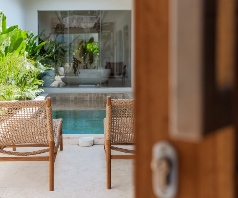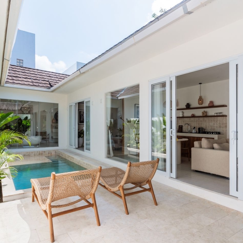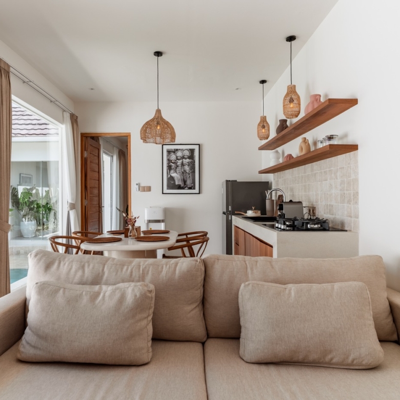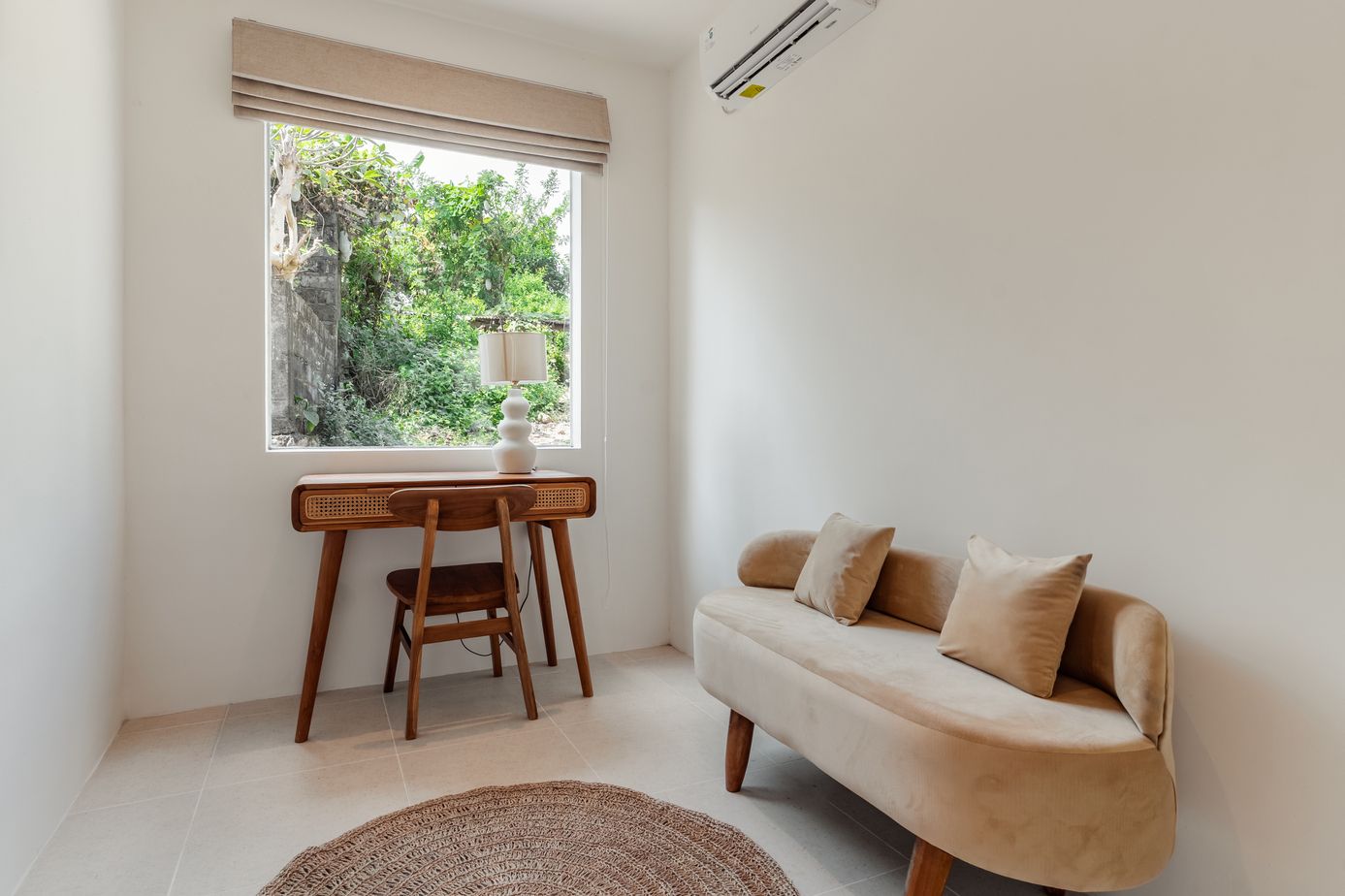 Wake up to sweeping ocean views and end your days with Bali’s golden sunsets from this Mediterranean-style apartment in Balangan. Featuring a bright, west-facing layout, enclosed living area, and a shared pool surrounded by greenery, this home is designed for effortless coastal living. Just two minutes from Balangan Beach and a short drive to Bingin, it’s the perfect combination of tranquility and connection. A turnkey investment for those who crave beauty, balance, and sea views every day.