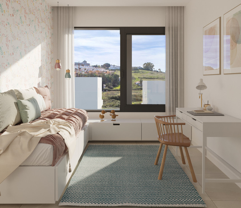 The homes enjoy excellent views and orientation, allowing for sunlight until sunset, as well as access to beautiful communal garden areas with two saltwater swimming pools—one of them designed for children and featuring beach-style access.