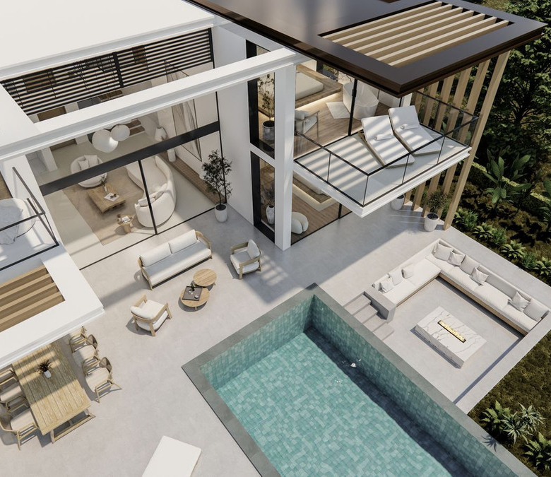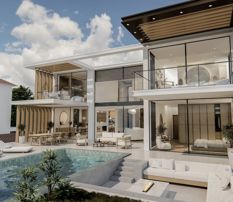 This contemporary villa stands out for its architectural design that reflects a game of volumes with a contemporary, Mediterranean and elegant aesthetic, offering relaxation and comfort, inviting to immerse in unique lifestyle.